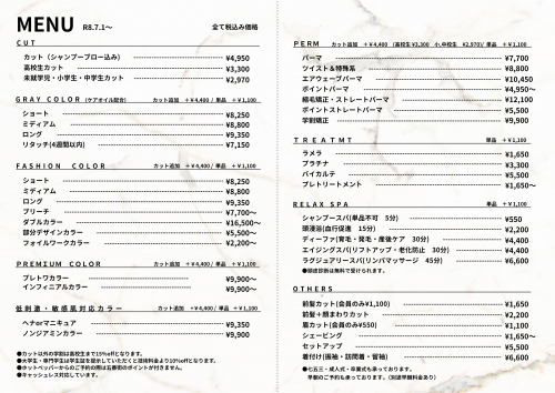 さて、昨今の原材料価格および人件費・水道光熱費の高騰により、弊社におきましても従来の価格でのサービス提供が困難な状況となっております。これまで30年近くカット以外の施術料金を維持してまいりましたが、やむを得ず下記の理由により施術料金を改定させていただくことになりました。